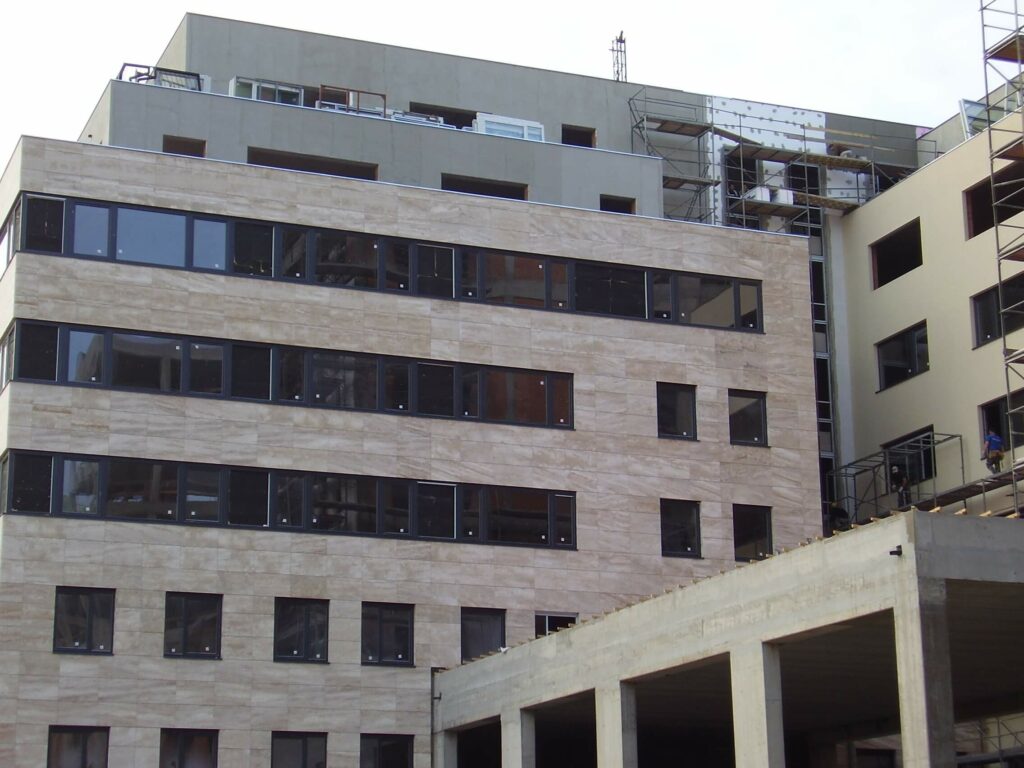 Acélkapcsokkal, sínekkel rögzített homlokzati szerelt (átszellőztetett) természetes kőburkolat kivitelezése, ragasztott (speciálisan rögzített hőszigetelésre is) homlokzati kőburkolat készítése.